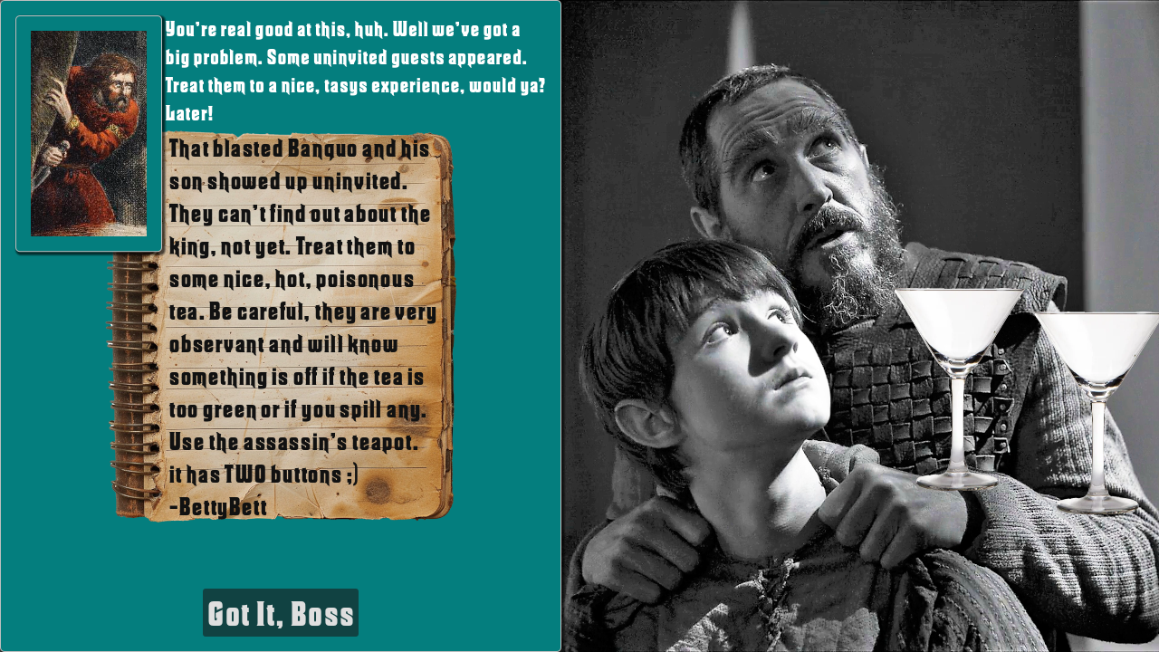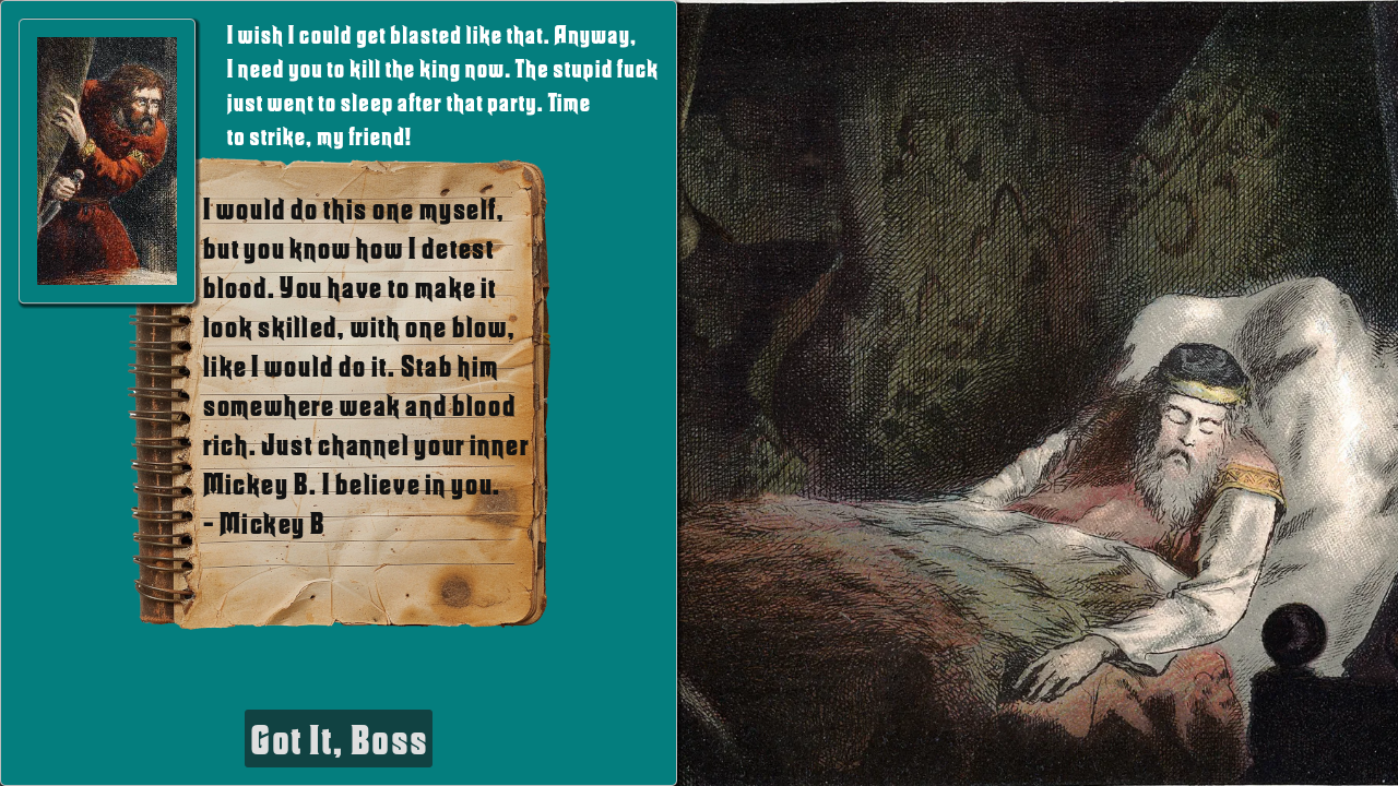 Made for the 10th Mystery Pizza Society Video Game Potluck With the theme: Shakespeare Adaptation + Explicit Instruction